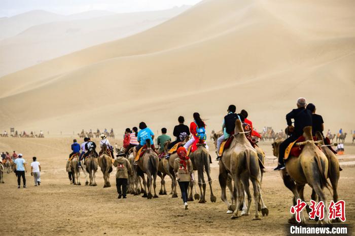 图为游客骑骆驼畅游鸣沙山。 王斌银 摄