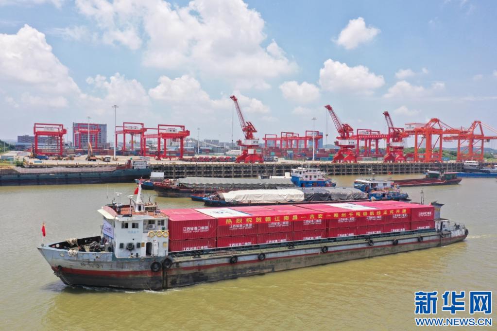 2021年6月,赣江南昌——吉安——赣州千吨级航线正式开通。新华网发(江西省港口集团供图)
