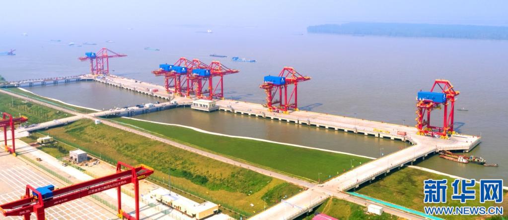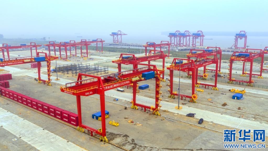 航拍九江红光国际港。新华网发(江西省港口集团供图)