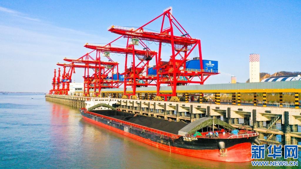 船舶在九江矶山公用码头卸载煤炭。新华网发(江西省港口集团供图)