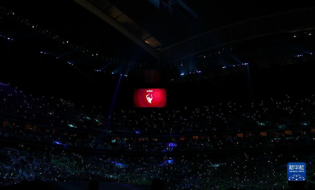 11月20日,开幕式现场大屏幕上出现本届世界杯吉祥物。