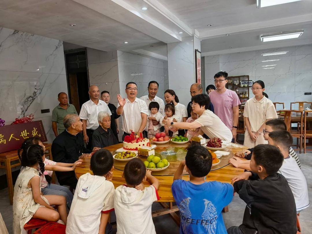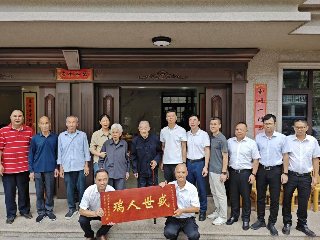重阳节前夕,永嘉县岩坦镇李庄村暖意融融。县领导带队登门,为百岁老人王宝巨同志送上“盛世人瑞”红木匾额与祝寿礼,五世同堂的亲友、闻讯道贺的乡亲挤满庭院,笑语与暖阳交织成最动人的图景。