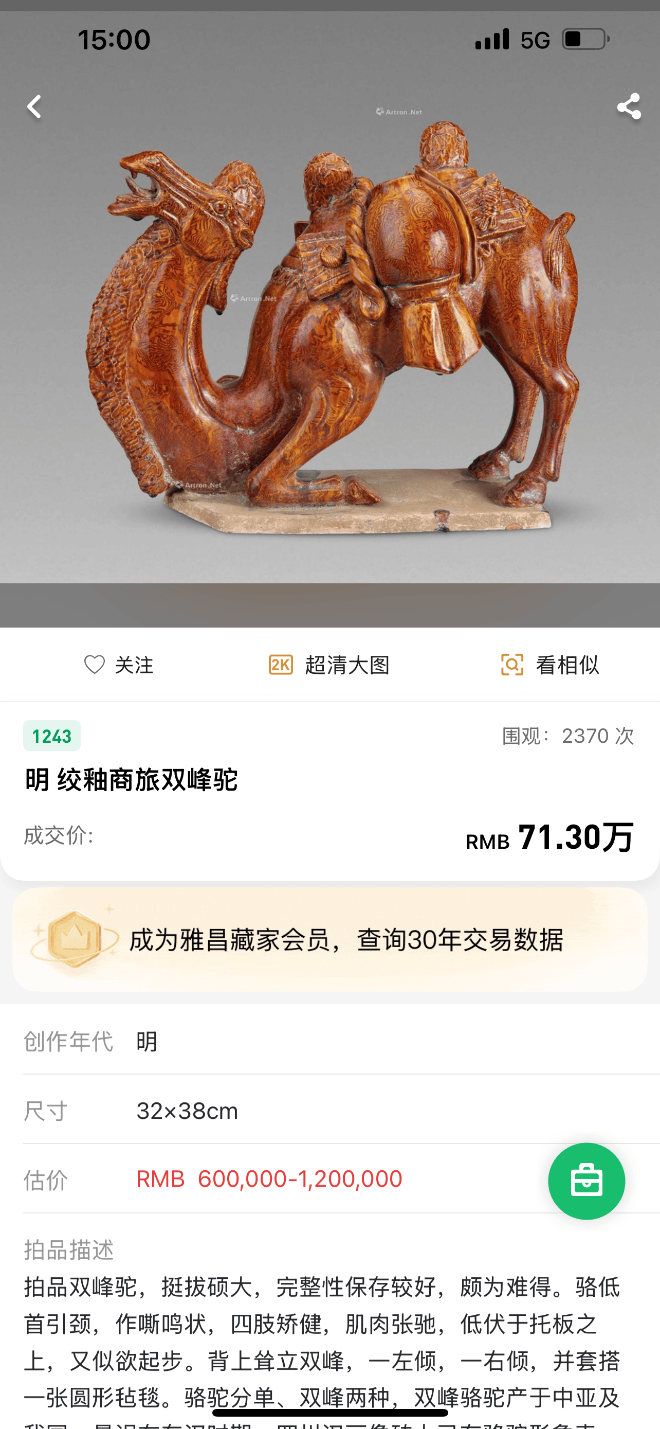 在高维东老师作品空间里看到那匹绞釉陶瓷骏马,瞬间让人想起2024年上海联合春季艺术品拍卖会上以71.3万元人民币成交的《明 绞釉商旅双峰驼》,雕塑手法精湛,制作技艺高超。体量硕大却丝毫不变形,造型规范,形体准确,是一件宝贵的艺术杰作。